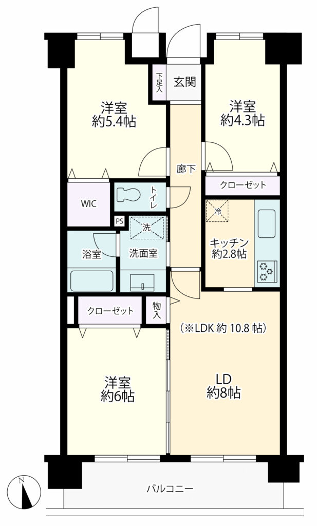 専有面積 | 壁芯64.20㎡(19.42坪) |